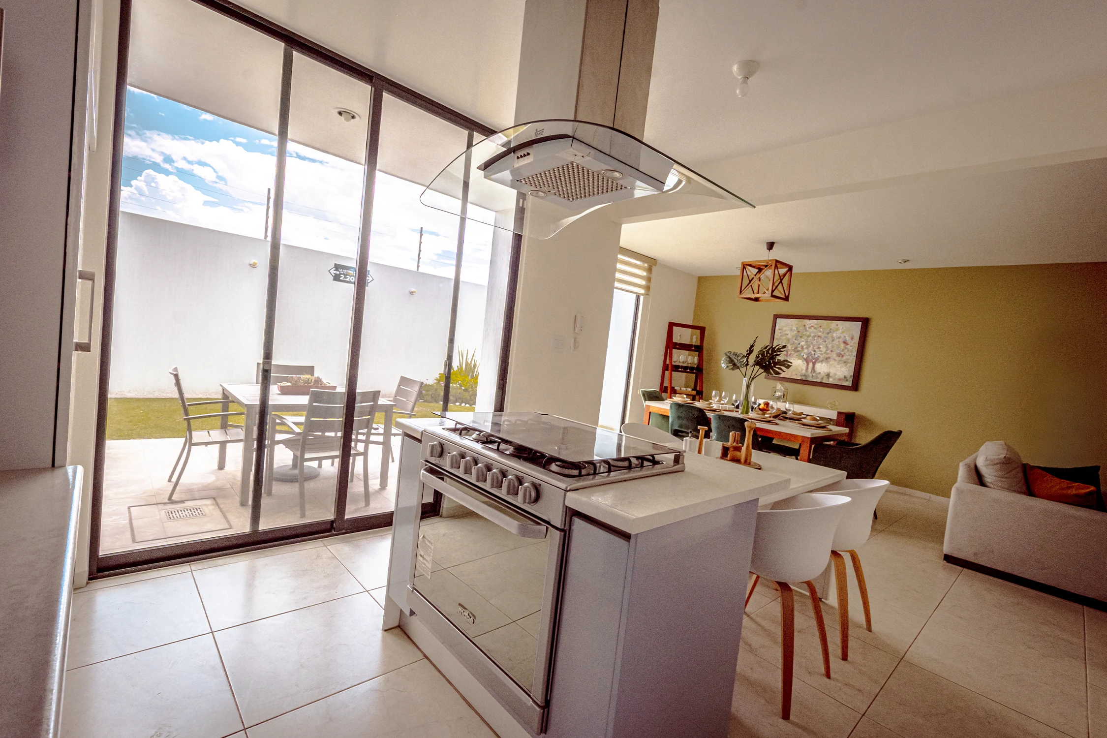 Al ingresar, te recibe una cochera semi-techada para dos autos, con un área adicional perfecta para almacenar bicicletas, herramientas o equipo deportivo. La cocina se convierte en el corazón del hogar, con acceso directo al cuarto de lavado y al patio trasero, donde un asador te invita a compartir momentos inolvidables al aire libre.