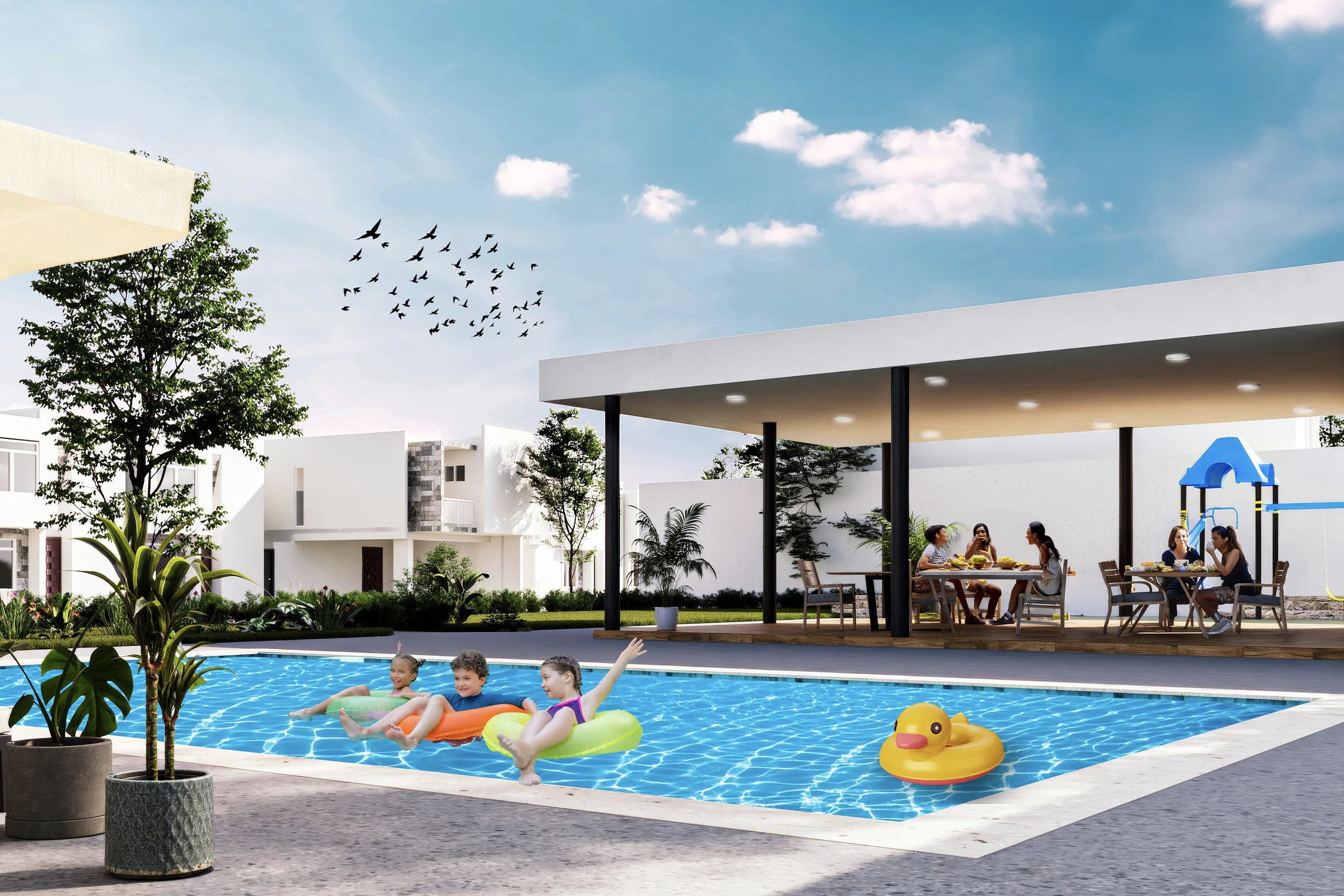 Todas las fotografías, imágenes y videos son ilustrativas, los acabados y accesorios pueden variar. La distribución medidas superficies y proporciones de los modelos de casa y amenidades son aproximados y con fines ilustrativos y podrán variar.