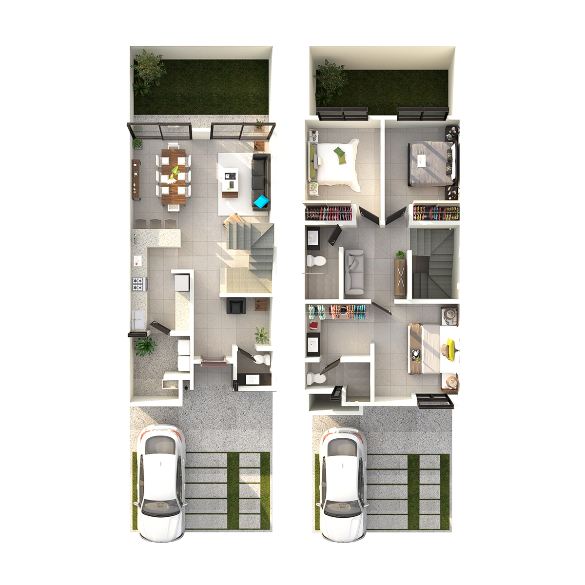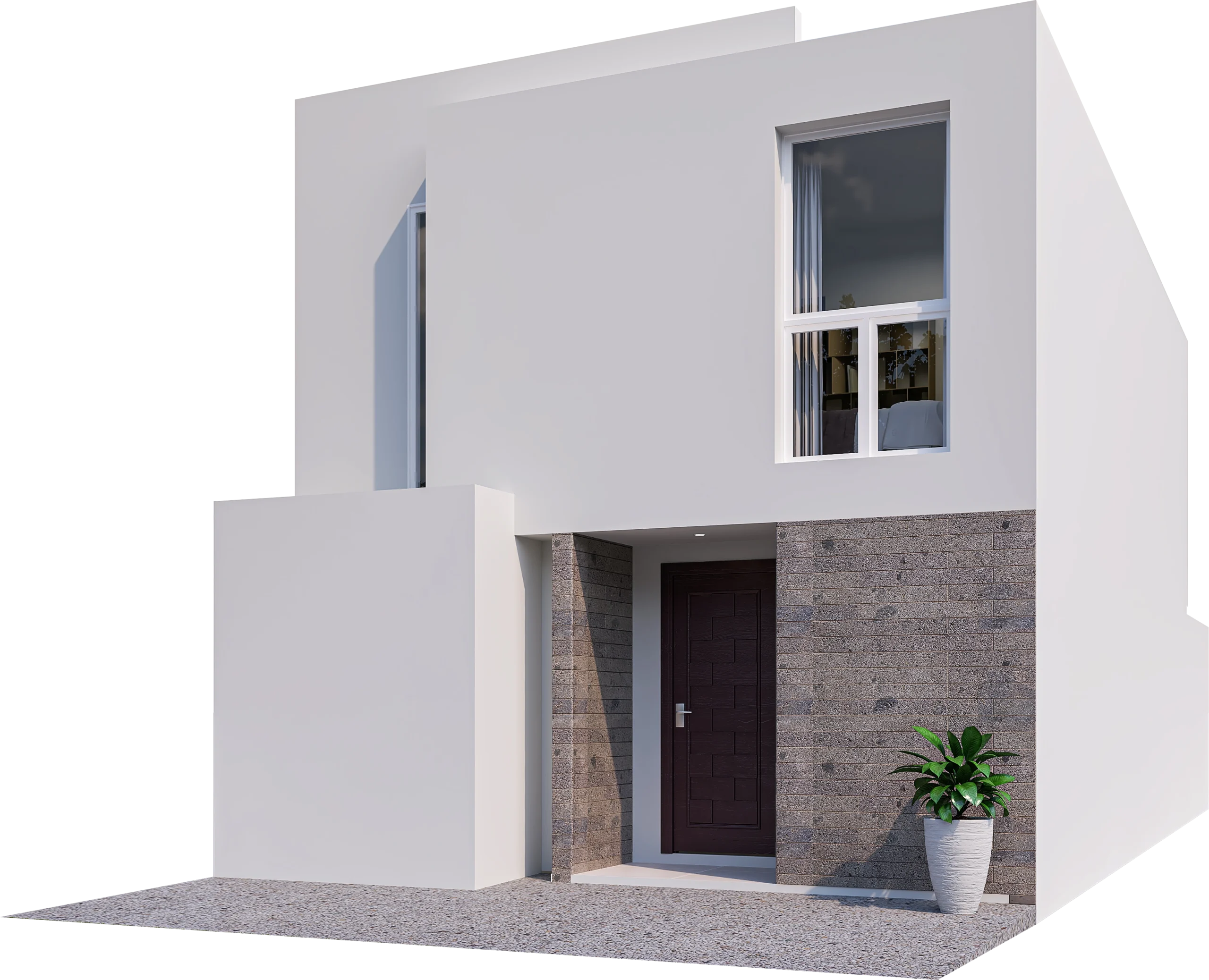 IMPORTANTE: Los materiales, acabados, canceleria, pintura de interiores, pisos tanto interiores como exteriores, puertas, accesorios de baño y detalles de equipamiento, tanto en la fachada como en el interior de la vivienda y el patio trasero, pueden variar de acuerdo con las especificaciones de cada proyecto o etapa.