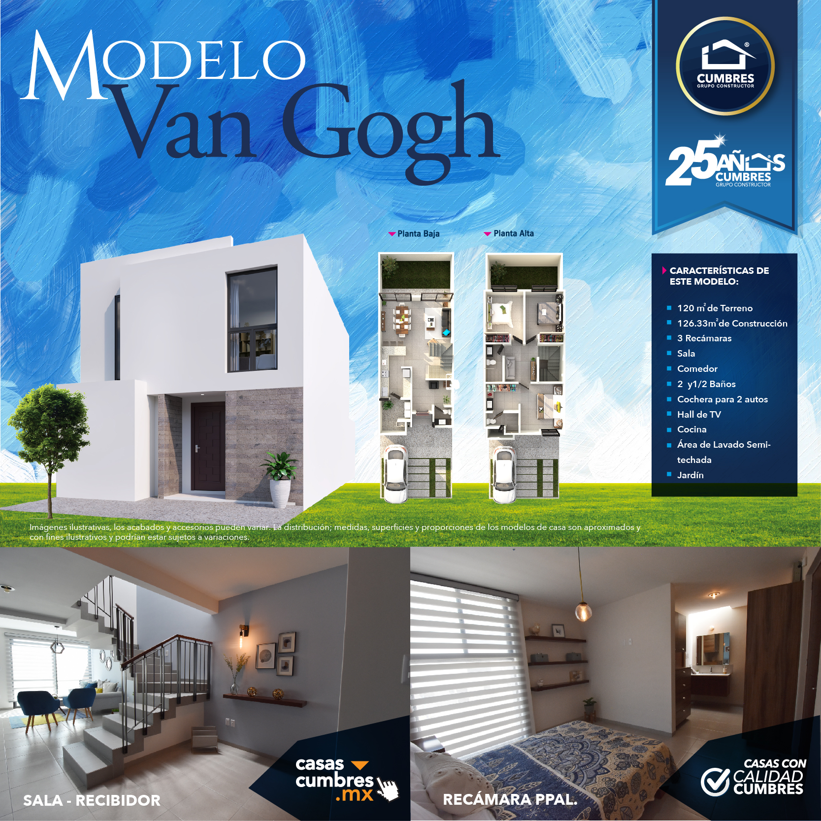 Con materiales de alta calidad y una estructura sólida, el modelo Van Gogh garantiza durabilidad y resistencia a lo largo del tiempo. Su distribución inteligente incluye tres recámaras, la principal con baño completo y vestidor.